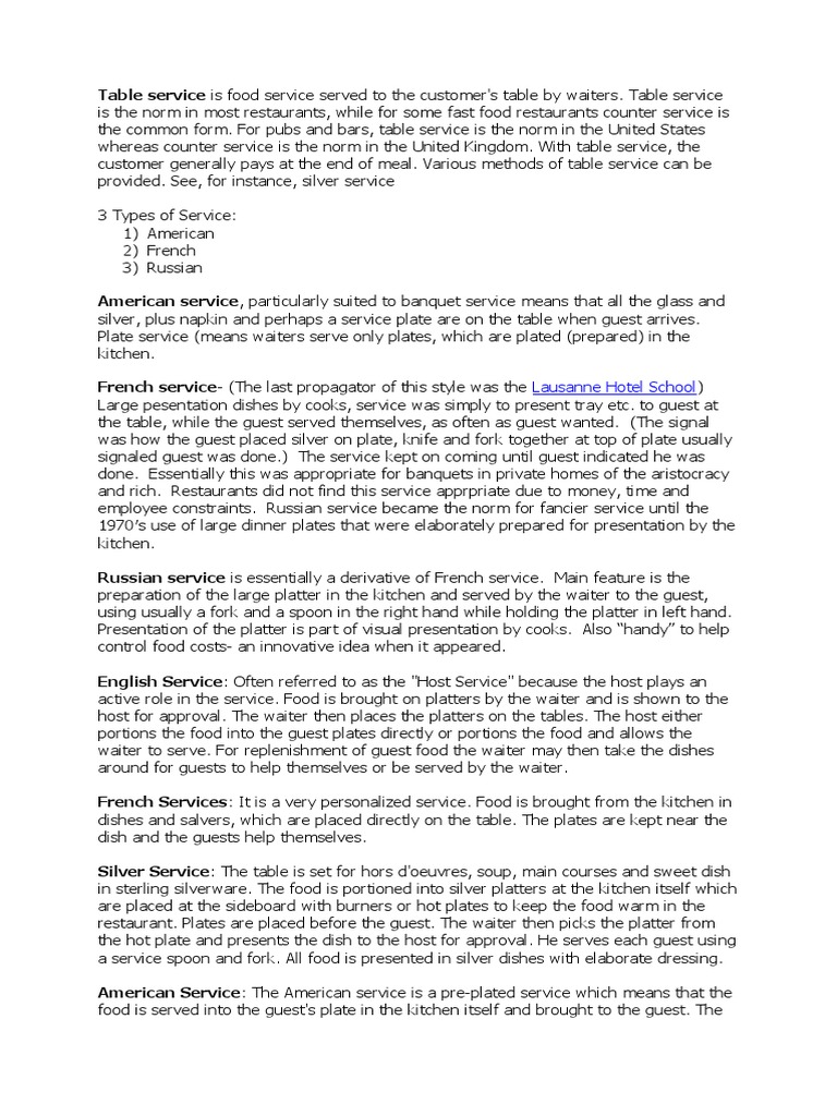 Hpc3Types of Table Service PDF Foodservice Fast Food Table Service Definition Be it by the standard “waiter. Published on october 17, 2018. Running a restaurant business is no child’s play. Web table service can either be ‘table d'hote’, where customers order from a menu and are served a fixed meal, or. Every table service style is unique, from the english style to. Web “table service” is a restaurant industry term that. Table Service Definition.